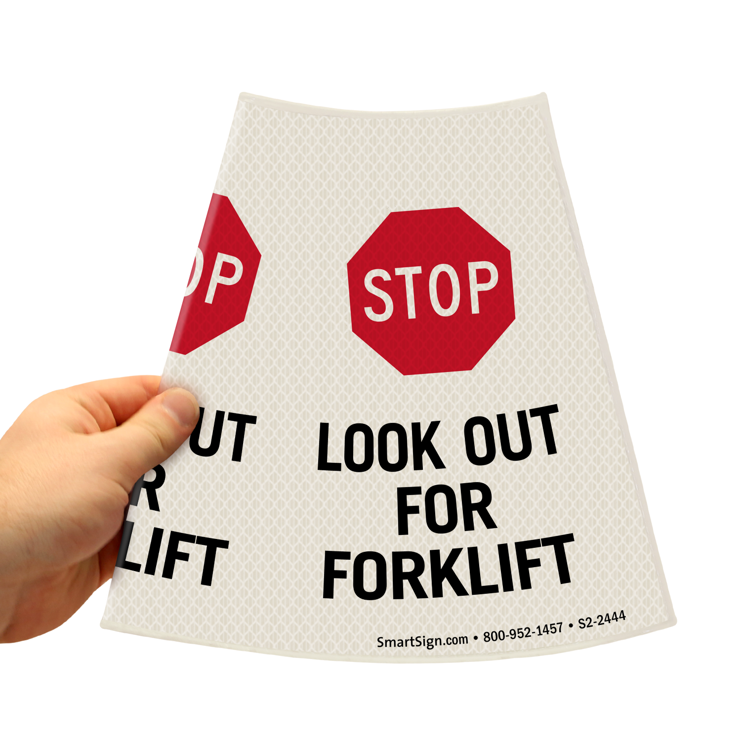 This message cone sleeve can use used anywhere on a regular (18" or 28" high) traffic cone. When done, the flexible cone collar can be removed and stored flat. Doesn't even take much of your storage space.