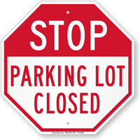 This Parking lot closed sign in octagonal stop sign form is hard-to-ignore.
