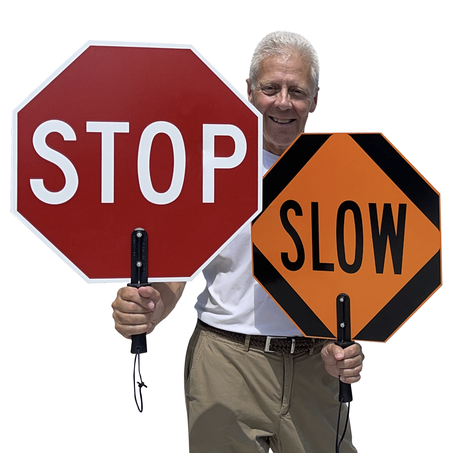 Paddle has STOP on one side and SLOW on the other.