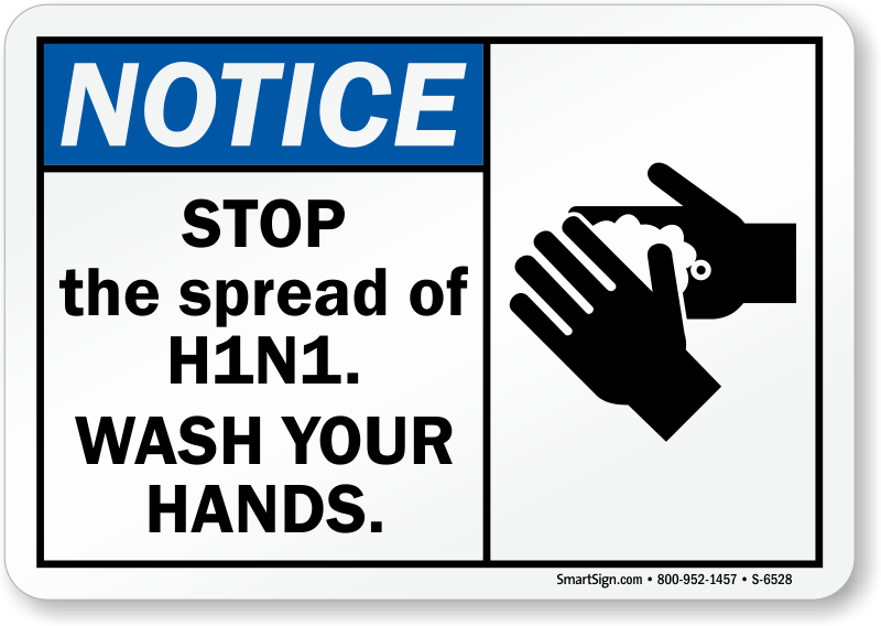 You can stop the spread of H1N1 virus with a bold Hand Washing sign. Remind everyone of their responsibility to make a safer, healthier school or workplace.