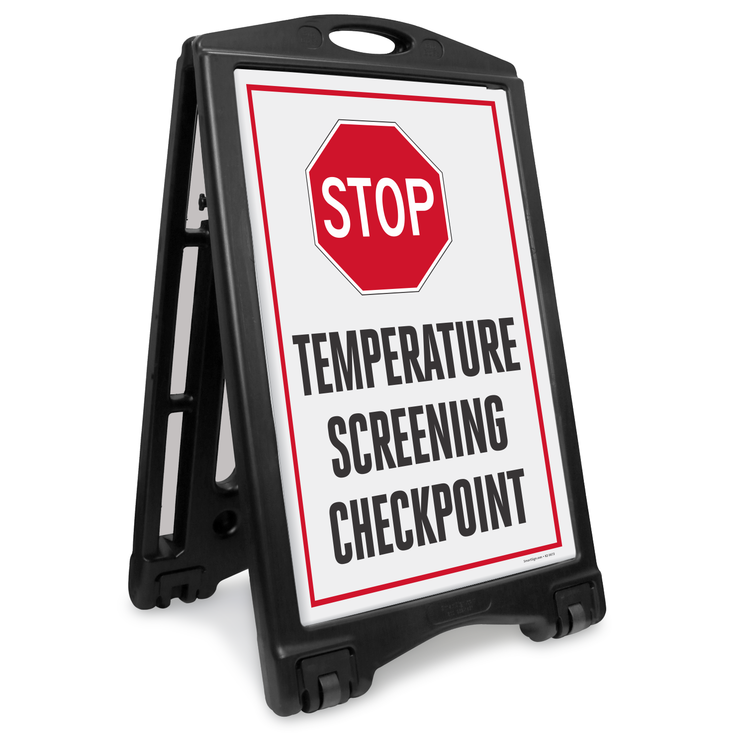 STOP- Temperature Screening Checkpoint sign helps you convey everyone entering your facility where can they get their temperature screened.