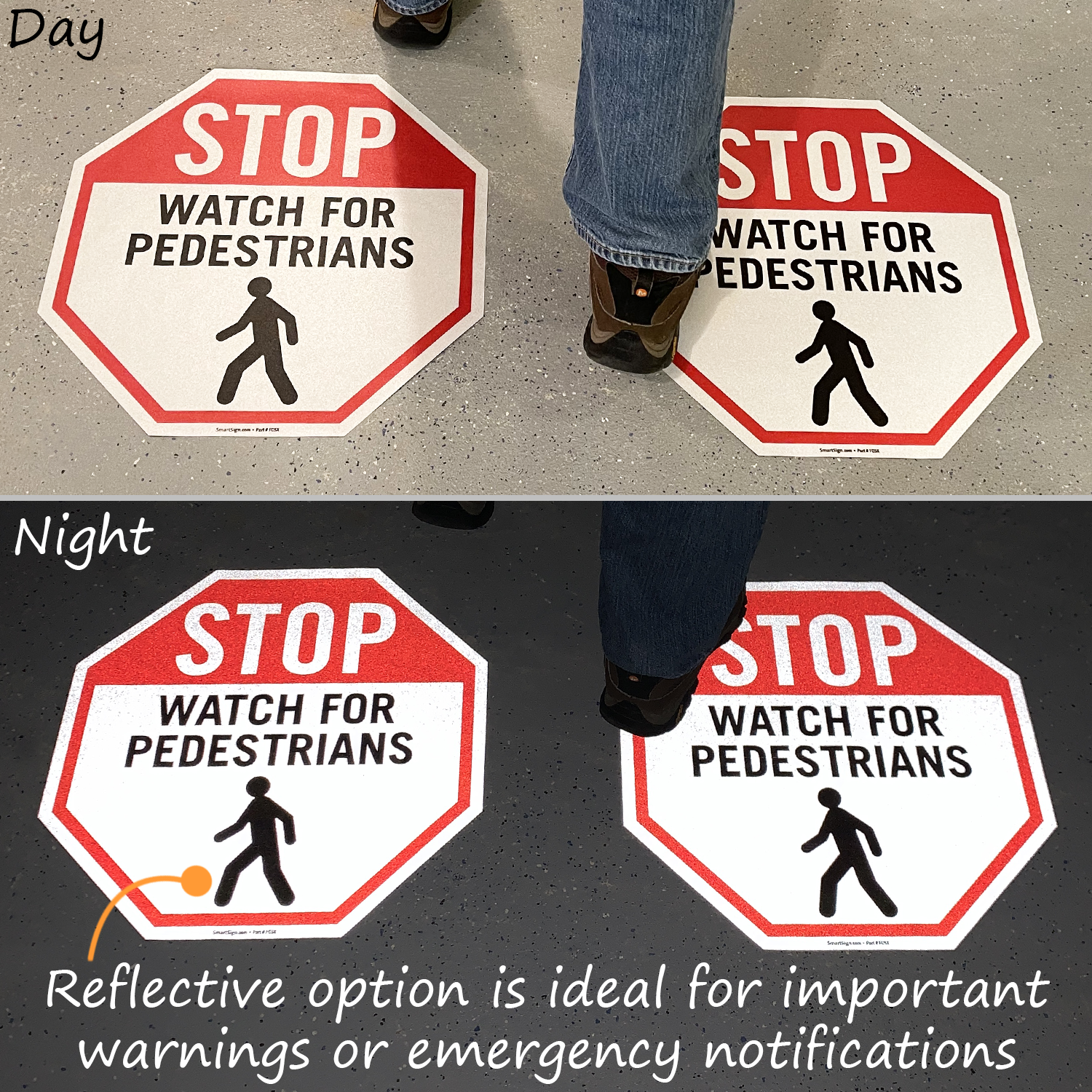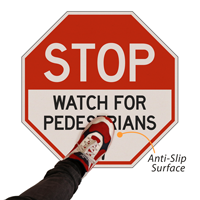 Protect pedestrian by alerting forklifts and other vehicles to stop and watch for foot traffic. The tough anti-slip surface is perfect for delivering your safety message in warehouses and commercial environments.