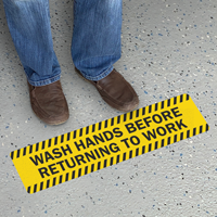 Promote healthy and hygienic practices in the workplace with this conspicuous floor sign. Perfect for use at the entrances to office areas, production floors, warehouses, and so on.