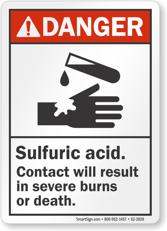 ANSI Danger Sign: Sulfuric Acid, Contact Will Result In Severe Burns Or Death S2-2828
