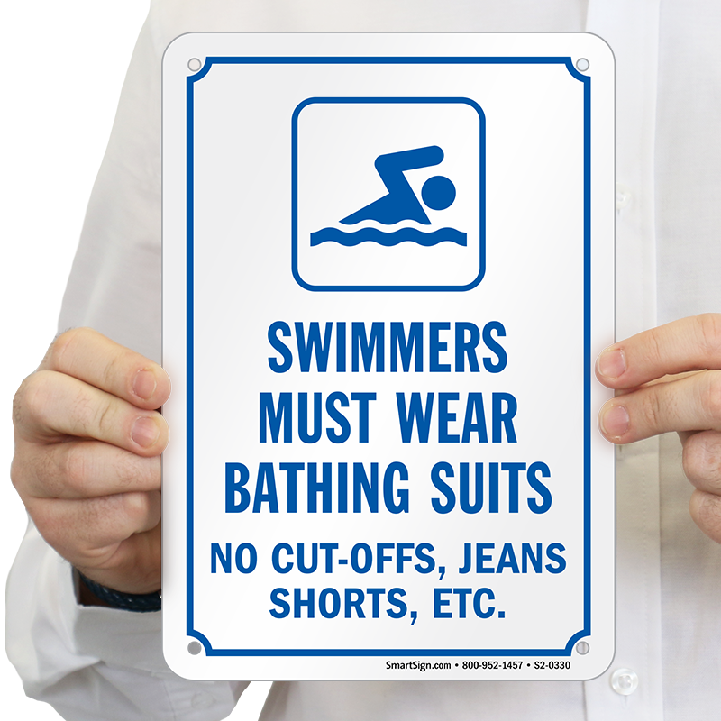 Have fun in the pool but with a set of rules! Request swimmers to wear bathing suits with this pool rules sign to prevent any contamination.
