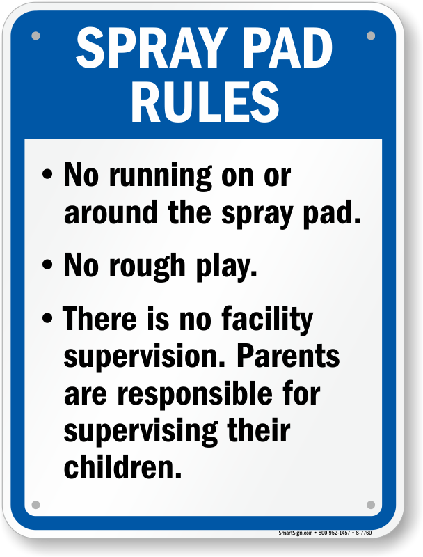 Iowa Spray Pad Rules Sign: Spray Pad Rules, No Running on Or Around The Spray Pad S-7760 Learn More...
