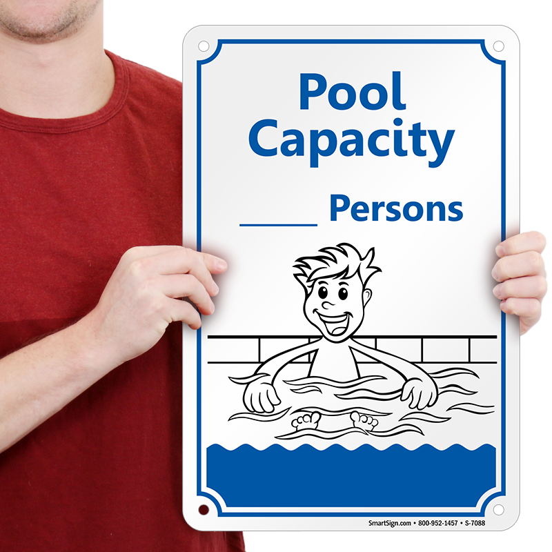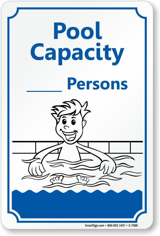 This pool rule "Pool Capacity ____________ Persons" sign is the best way to keep your policy posted so that there can be no debate about how many persons are allowed in a pool. A sign is there, even when you aren't.