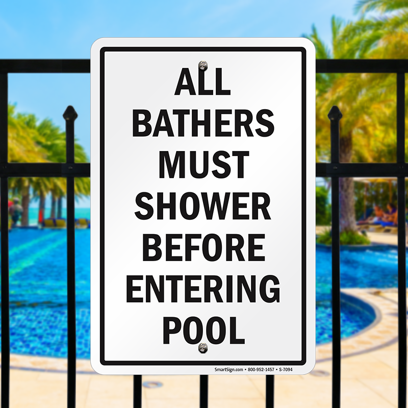 Swimming Pool Sign: All Bathers Must Shower Before Entering The Pool S-7094 Learn More...