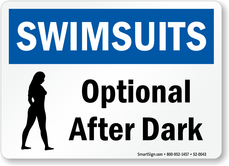 Make your "swimsuits optional" message clear by posting this sign near the pool area.