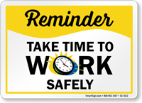 Safety Reminder Sign: Take Time To Work Safely S2-1612