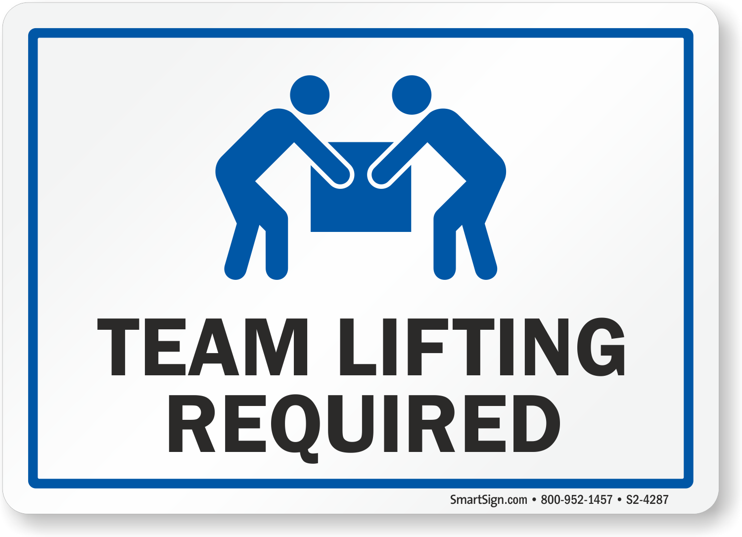 Very heavy lifting requires a team and this information should be communicated with a sign like this that will always remind of safety.