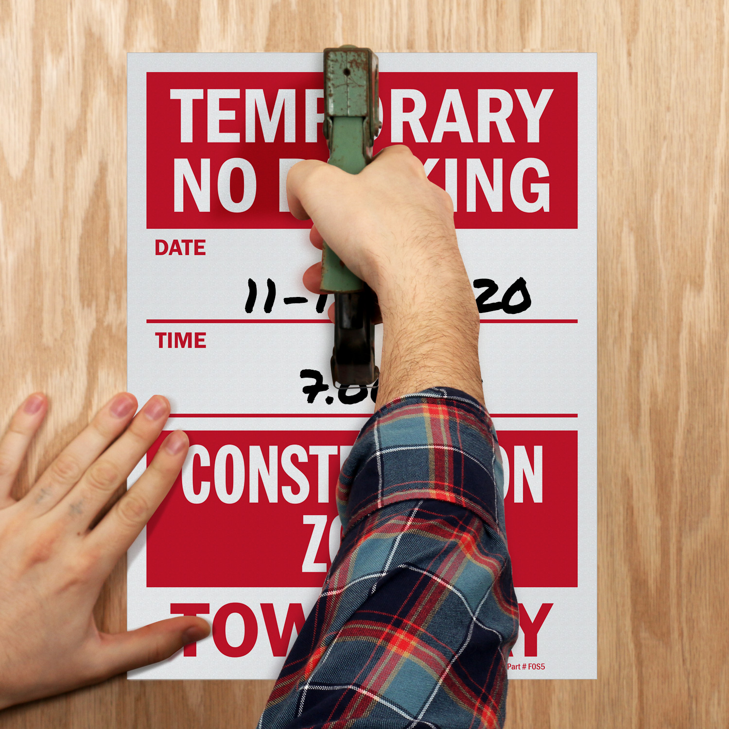 Order a writeable, flexible, tear-proof plastic sign for your construction zone and prevent people from parking there till the time work is in progress.