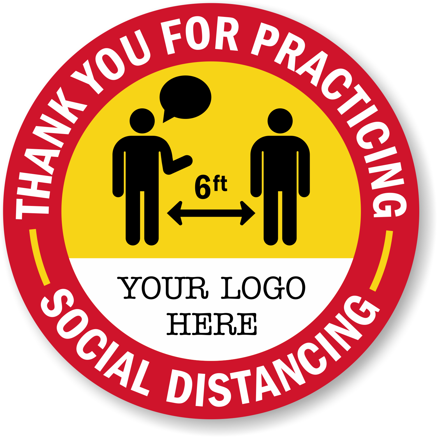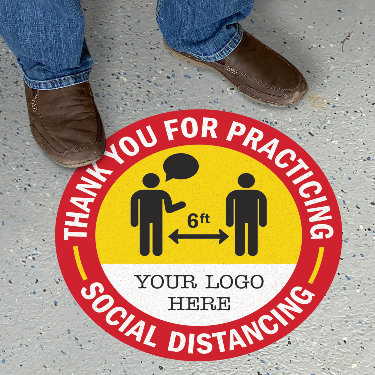 SlipSafe⢠Custom Floor Sign: Thank You For Practicing Social Distancing, Add Your Logo Here