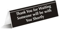 - Sign has a distinct tent like design that allows you to place the sign on the desk where it is viewed the most.