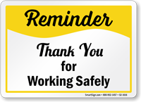 Safety Reminder Sign: Thank You For Working Safely S2-1616