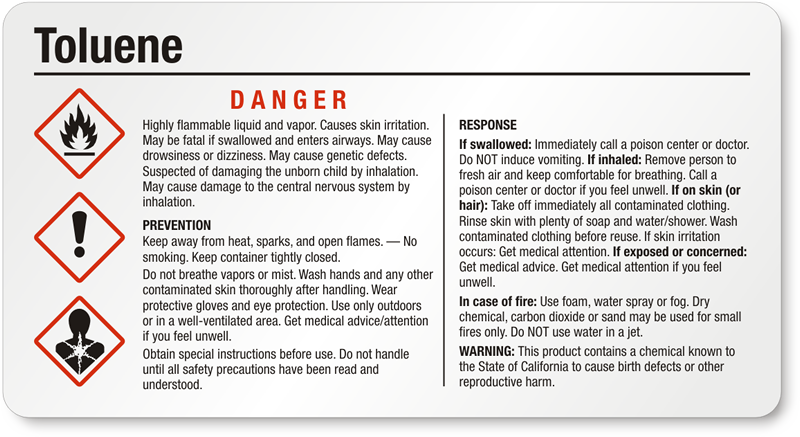 - View more GHS Toluene labels here.