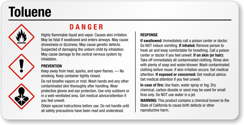 Educate your employees with crucial information about Toluene, a hazardous substance. Help them take ample precautions and safety measures with our small GHS Chemical Label.