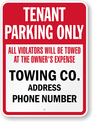 Custom Tow Away Sign: Tenant Parking Only, All Violators Will Be Towed At The Owner's Expense, Towing Co. Name Address, Phone Number