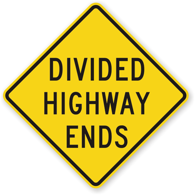 MUTCD Compliant Road Warning Sign: Divided Highway Ends X-W6-2A Learn More...