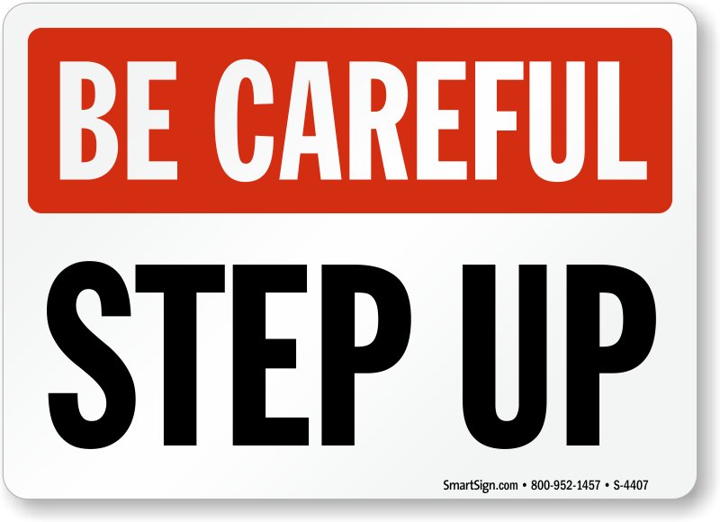 This Be Careful Step Up Sign alerts everyone of tripping hazard and prevents falls and injuries.