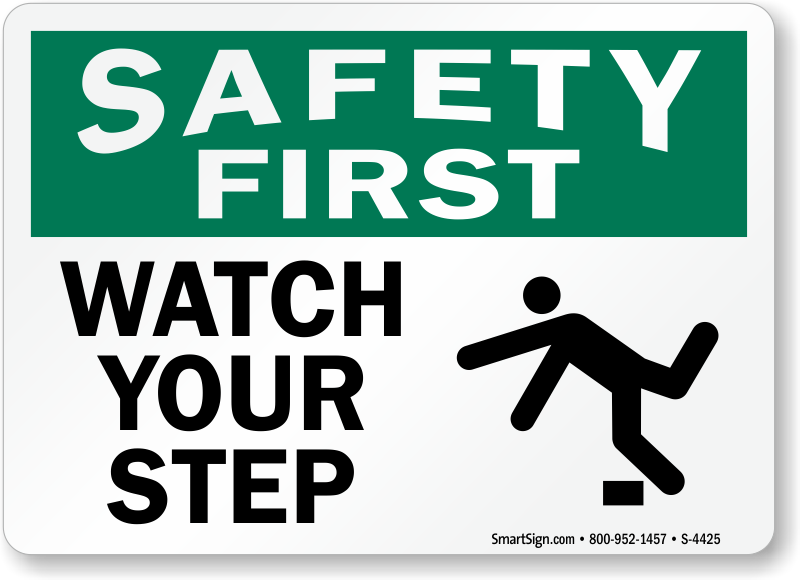 OSHA Safety First Sign: Watch Your Step (with Trip n Fall Graphic)