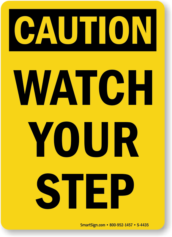 Use a "watch your step, vertical" sign. Give people the information they need.