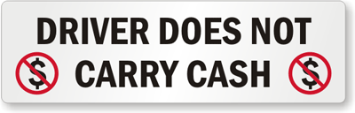 This adhesive label protects drivers and lets passengers know the driver won't have extra change. Includes two small graphics.