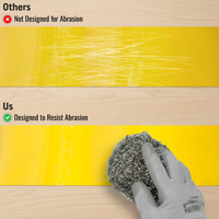 - Polyester over lamination protects against abrasion and harsh chemicals.