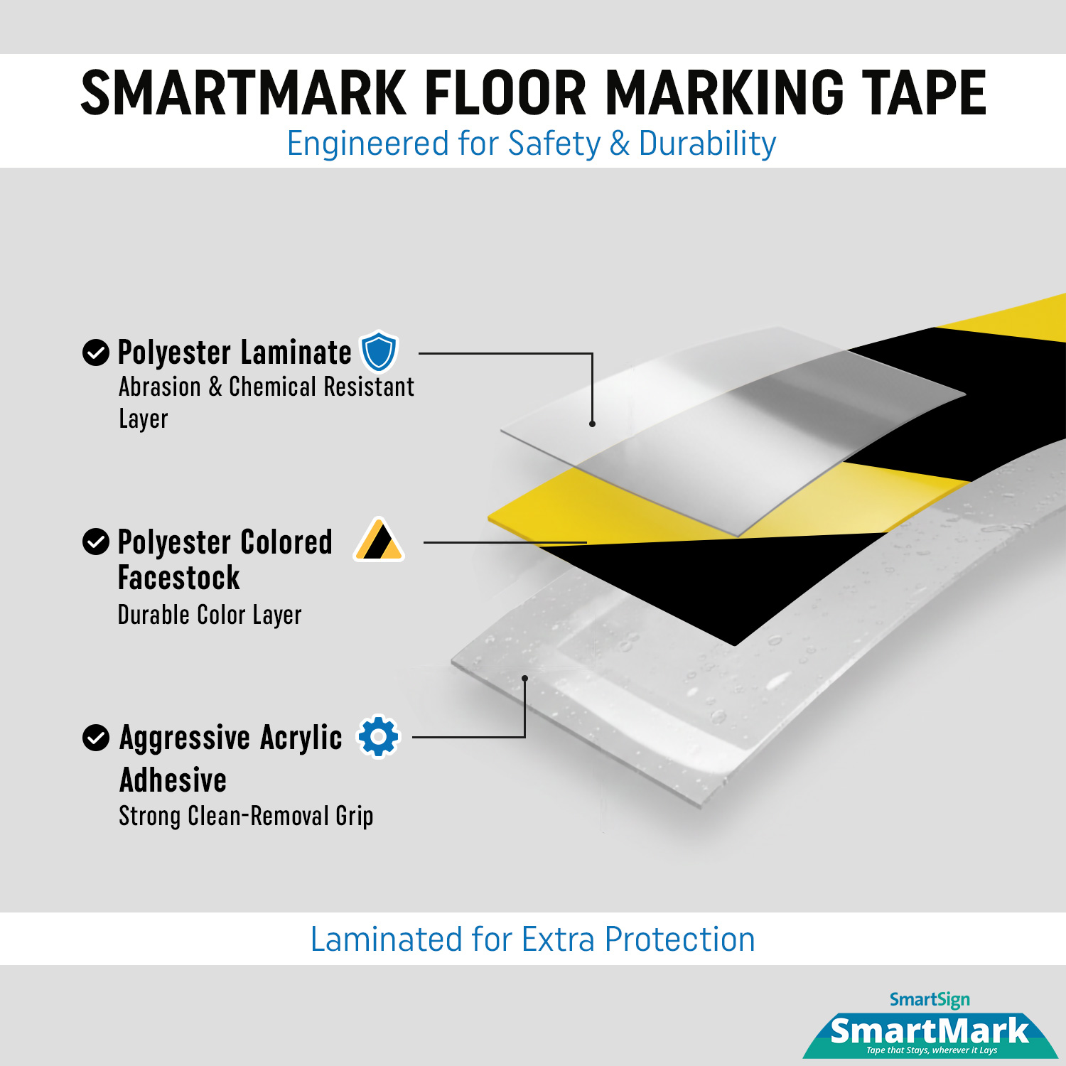 SmartMark extra-tough, low profile tapes provide a long lasting for marking floors, aisles, walkways, and workflows in your facilities.