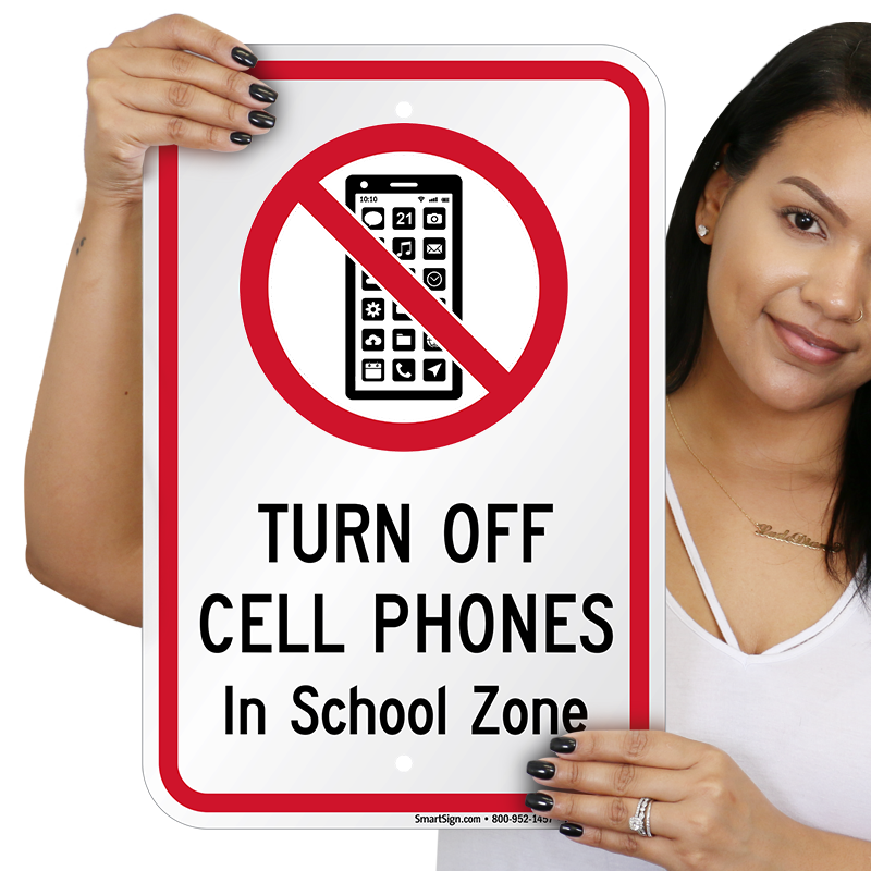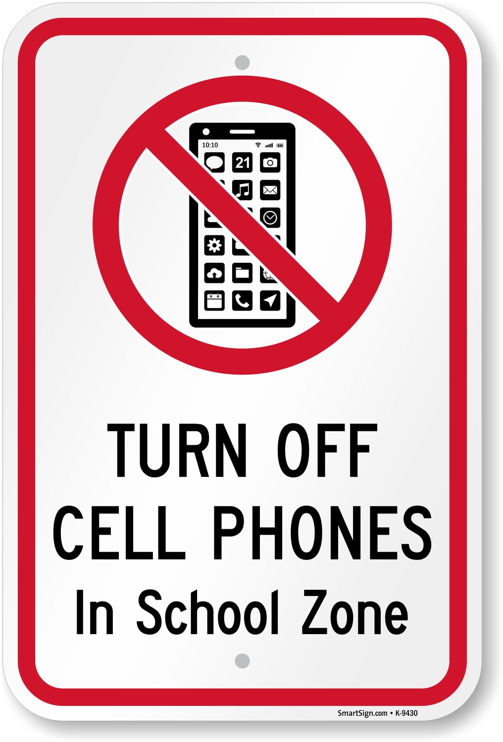 No Cell Phone In School Sign: Turn Off Cell Phones In School Zone (with No Cell Phones Symbol) K-9430 Learn More...