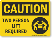 Two person lift required sign makes sure no one gets injured while lifting heavy stuff in your facility.