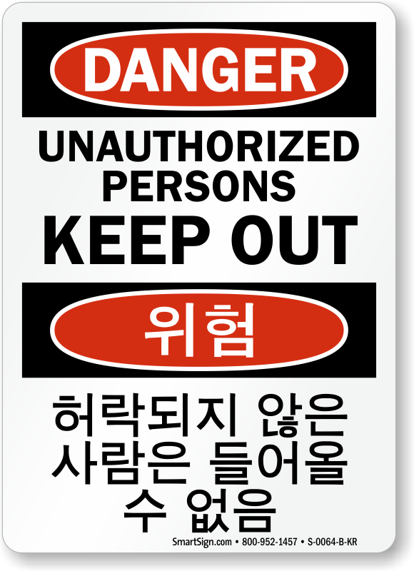 For workers coming from diverse backgrounds, a message only in English does not serve the complete purpose. Reach out to your Korean speaking workers too. Deploy this sign and keep unauthorized people out of the area.