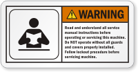Educate workers the importance of reading service manual instructions before operating or servicing a machine. This horizontal ANSI label will help you do so.