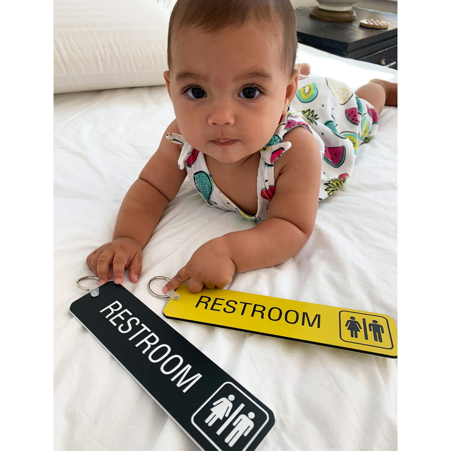- You can prevent people from walking away with your bathroom keys with this large, easy-to-identify keytag.