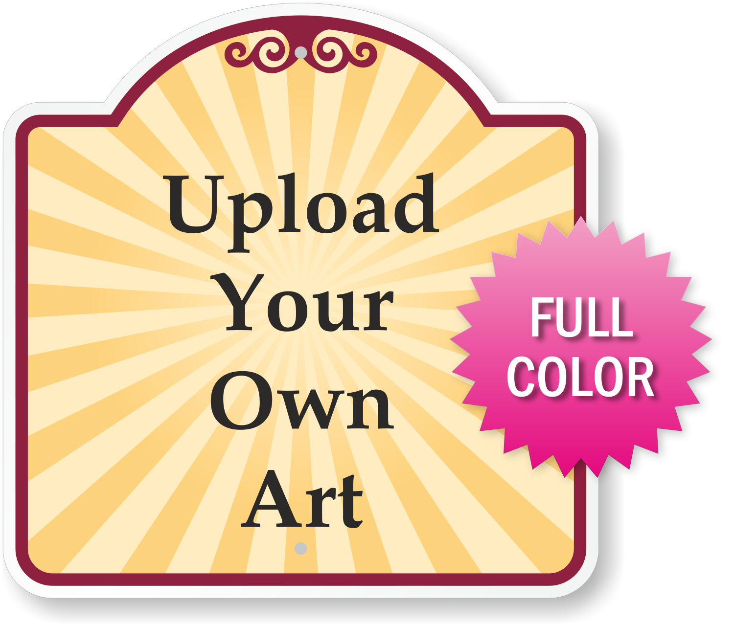 Why restrict your design (such as a company logo, seal, trademark, badge, figure, or any symbol) to a limited area on the sign? Have full space for your artwork on this 18 inch x 18 inch Custom Dome Shaped SignatureSign.