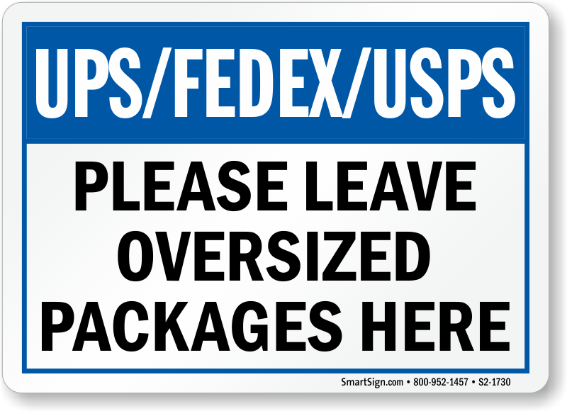 Package Delivery Sign: UPS/FEDEX/USPS - Please Leave Oversized Packages Here S2-1730