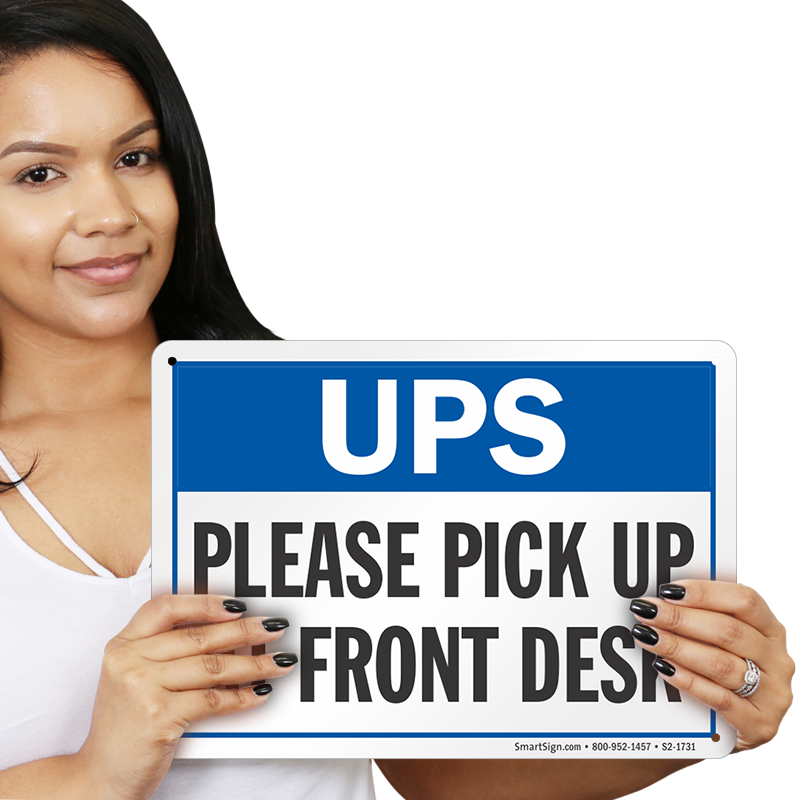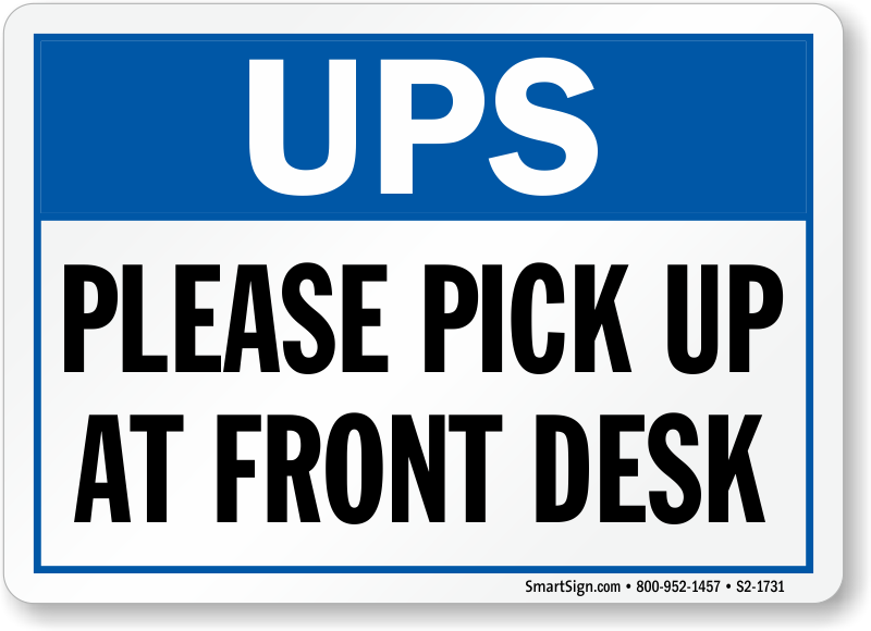 Package Delivery Sign: UPS - Please Pick Up At Front Desk S2-1731