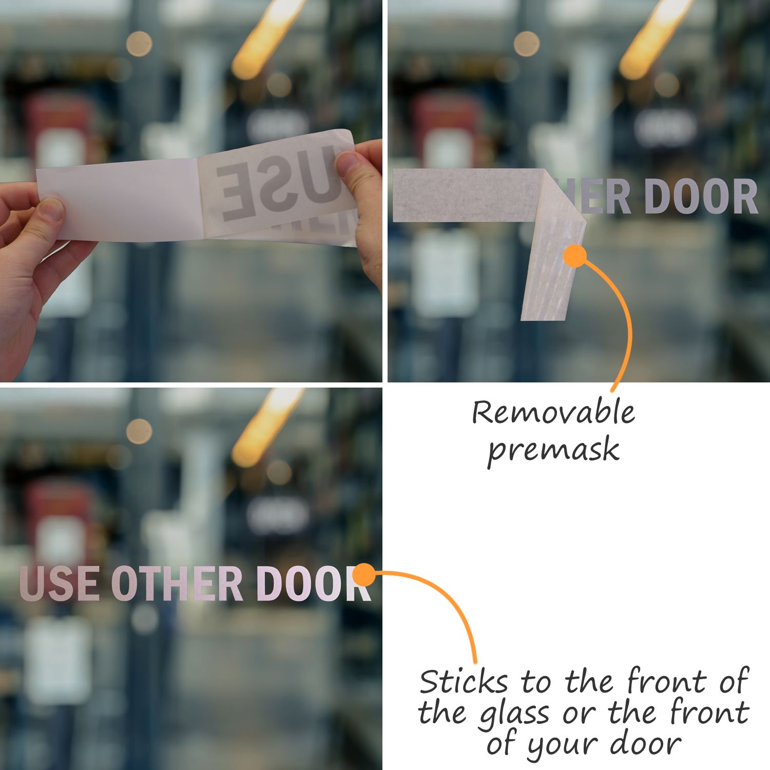 Stick Other Door Die Cut Glass Door Label to guide occupants on which means of access to use.