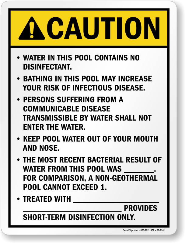 Utah Geothermal Pool Sign: Caution - Bathing In This Pool May Increase Your Risk Of Infectious Disease S2-2241 Learn More...