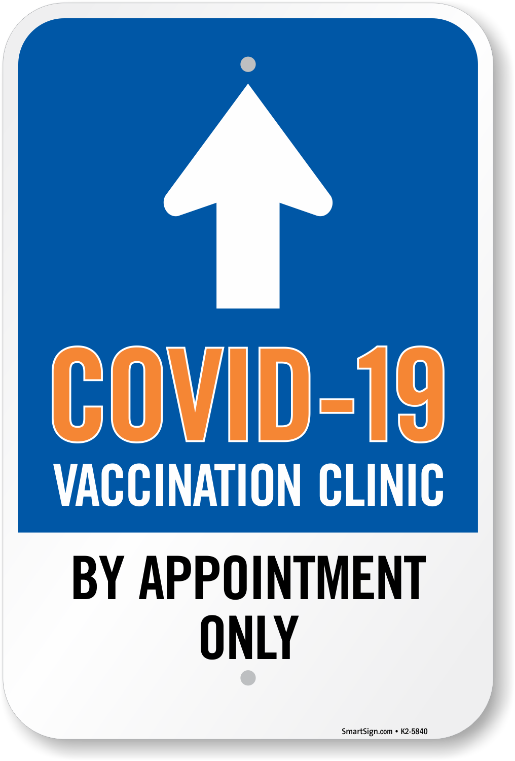 Vaccine site parking directional sign makes it easier for people to reach the vaccination clinic and also conveys that walk-ins are not entertained.