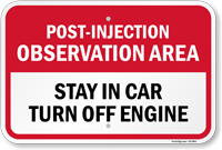 Identify and provide guidance about the post vaccination observation area with our bright and bold sign.
