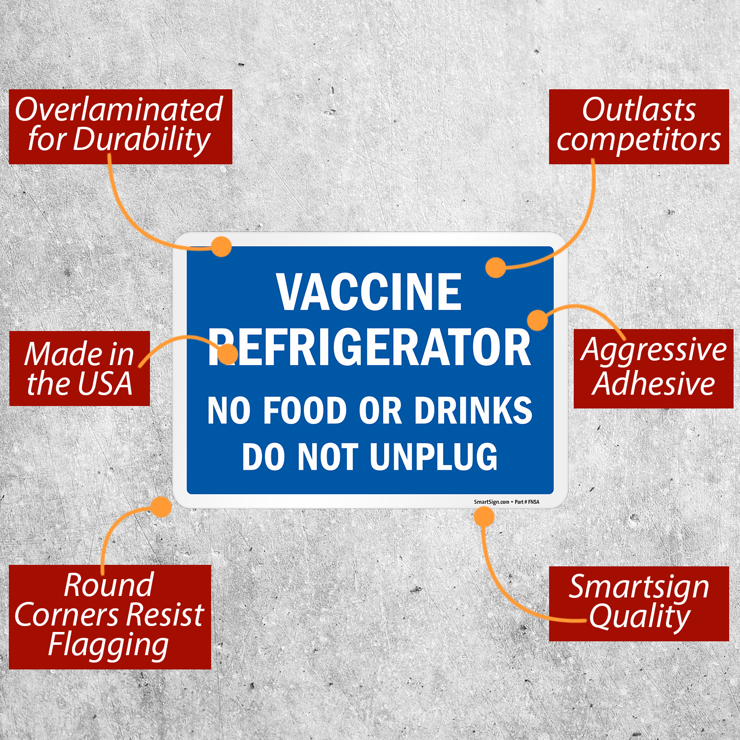 Post up this warning sign to remind employees there's an expensive vaccine in storage and the refrigerator or freezer must not be unplugged!