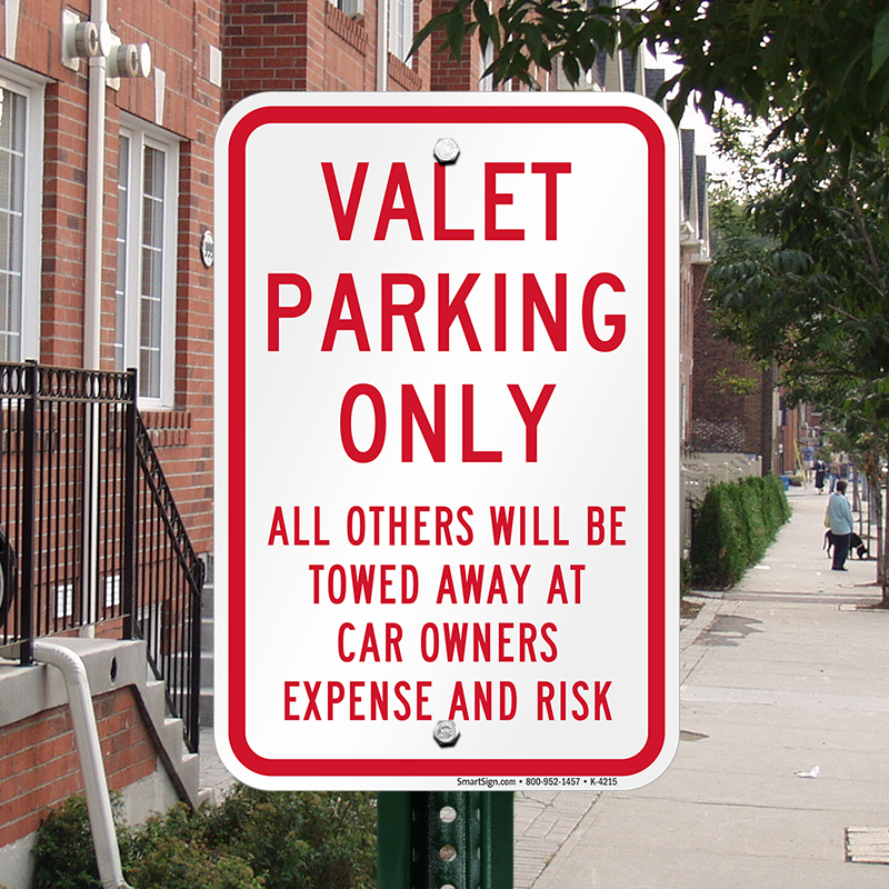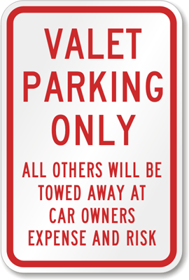 Valet Sign: Valet Parking Only, All Others Towed K-4215 Learn More...