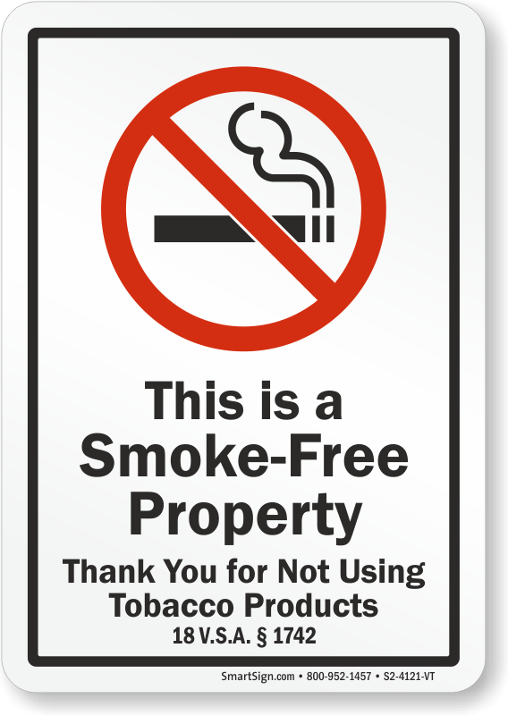 This Is A Smoke-Free Property Thank You For Not Using Tobacco Products Sign helps you comply with 18 V.S.A. § 1742.