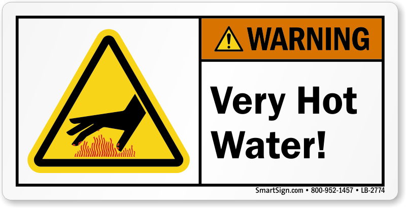 ANSI Warning Safety Label: Very Hot Water (With Hand Burn Graphic) LB-2774