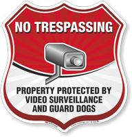 No Trespassing Shield Sign: Property Protected By Video Surveillance And Guard Dogs K2-5163
