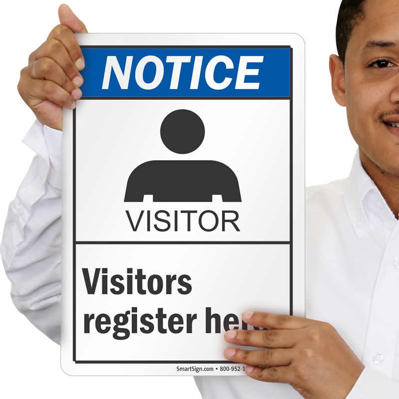 Notify your visitors to register their entrance before entering your facility with this ANSI Notice Sign.