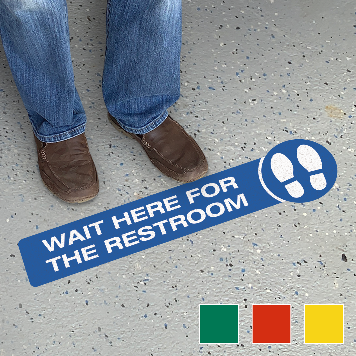 Inform people approaching towards the restroom about the position where they need to stand for their turn.