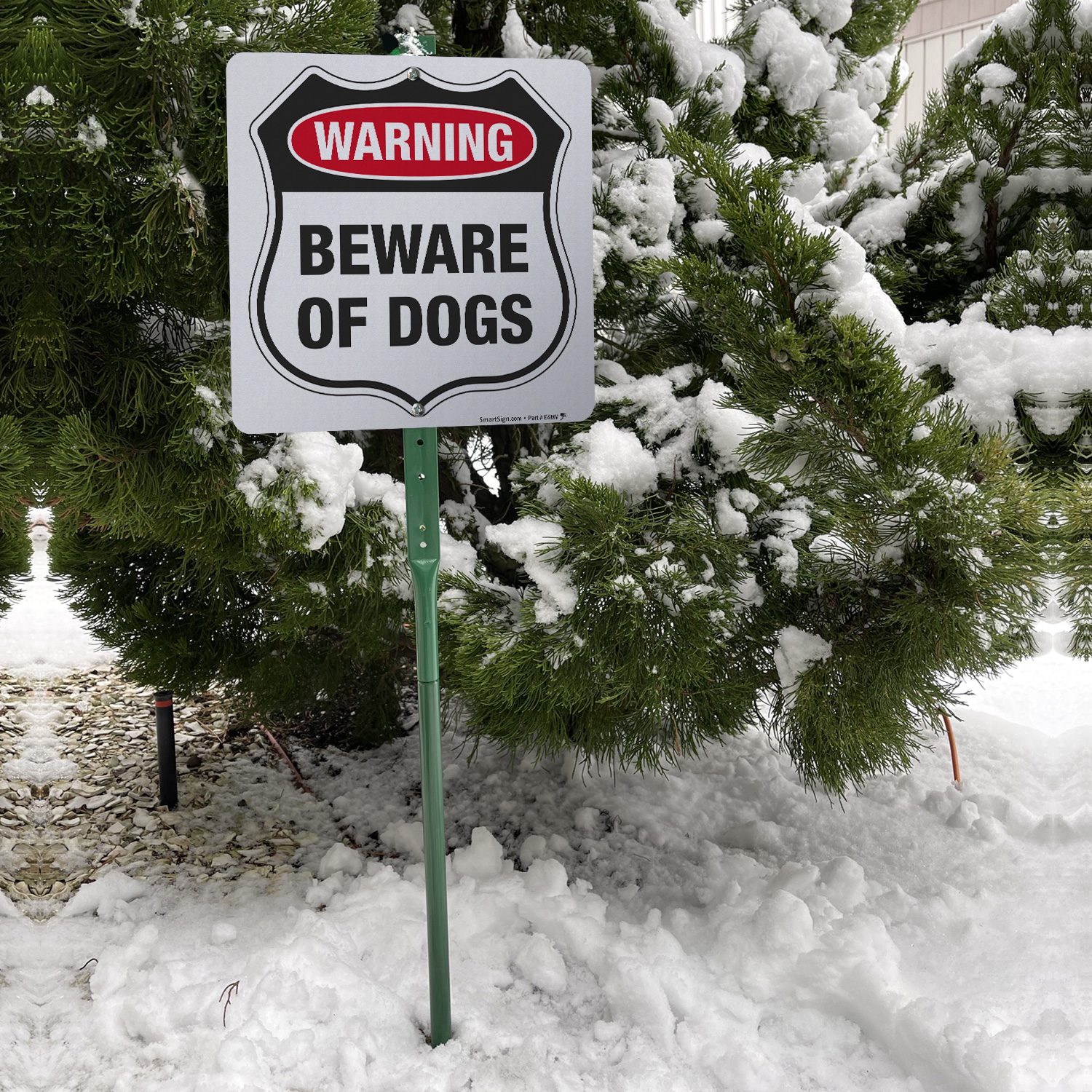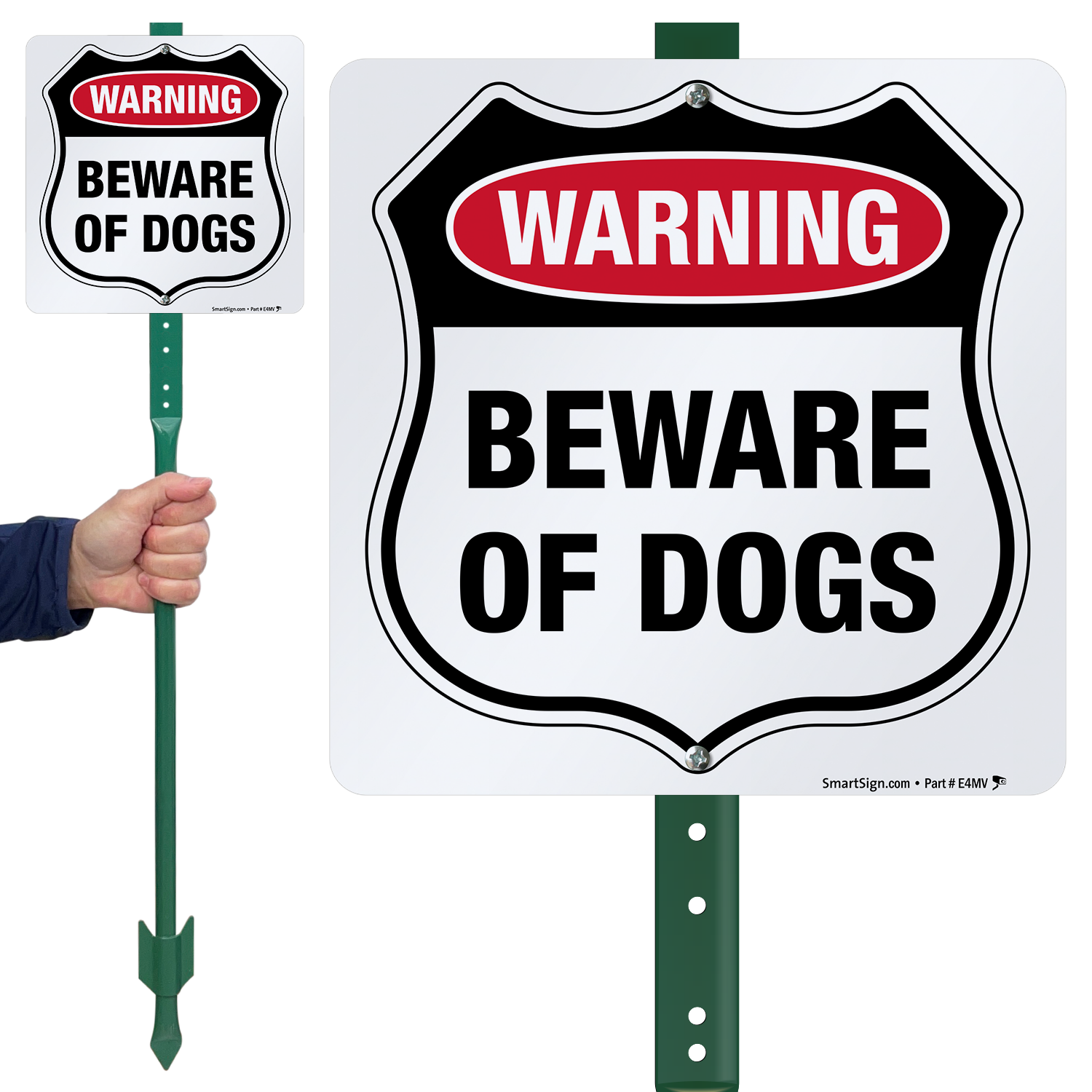 I am very pleased with this sign. It looks exactly as it appears online. The aluminum is thick, and I think it will withstand the harsh weather we have here. The parts were easy to put together, and mounting hardware for the sign was included. I own 3 large, very protective German Shepherd Dogs, and I live alone on property in a rural area. I prefer to deter intruders instead of meeting them inside my home. This sign, which I placed in my front garden, gives me some extra peace of mind. Thank you for selling a quality product.