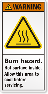 ANSI Warning Safety Label: Burn Hazard, Hot Surface Inside, Allow This Area To Cool Before Servicing, LB-0300 Learn More...